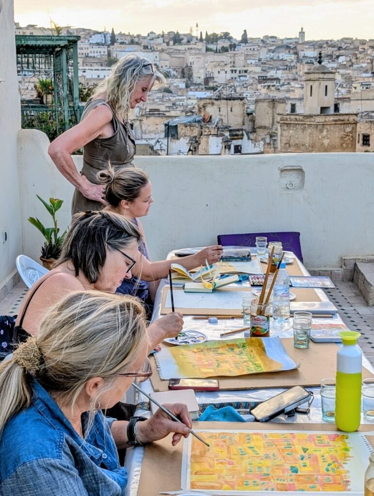 Dar Drouj is gelegen in de historische stad Fez, omgeven door een levendige sfeer en kleurrijke souks. Het is het ideale decor voor jouw creatieve avontuur! Het huis is prachtig versierd met traditionele mozaïeken en houten houtsnijwerk. Zodra je binnenkomt, ervaar je een serene ambiance die perfect is om te ontspannen en inspiratie op te doen.
